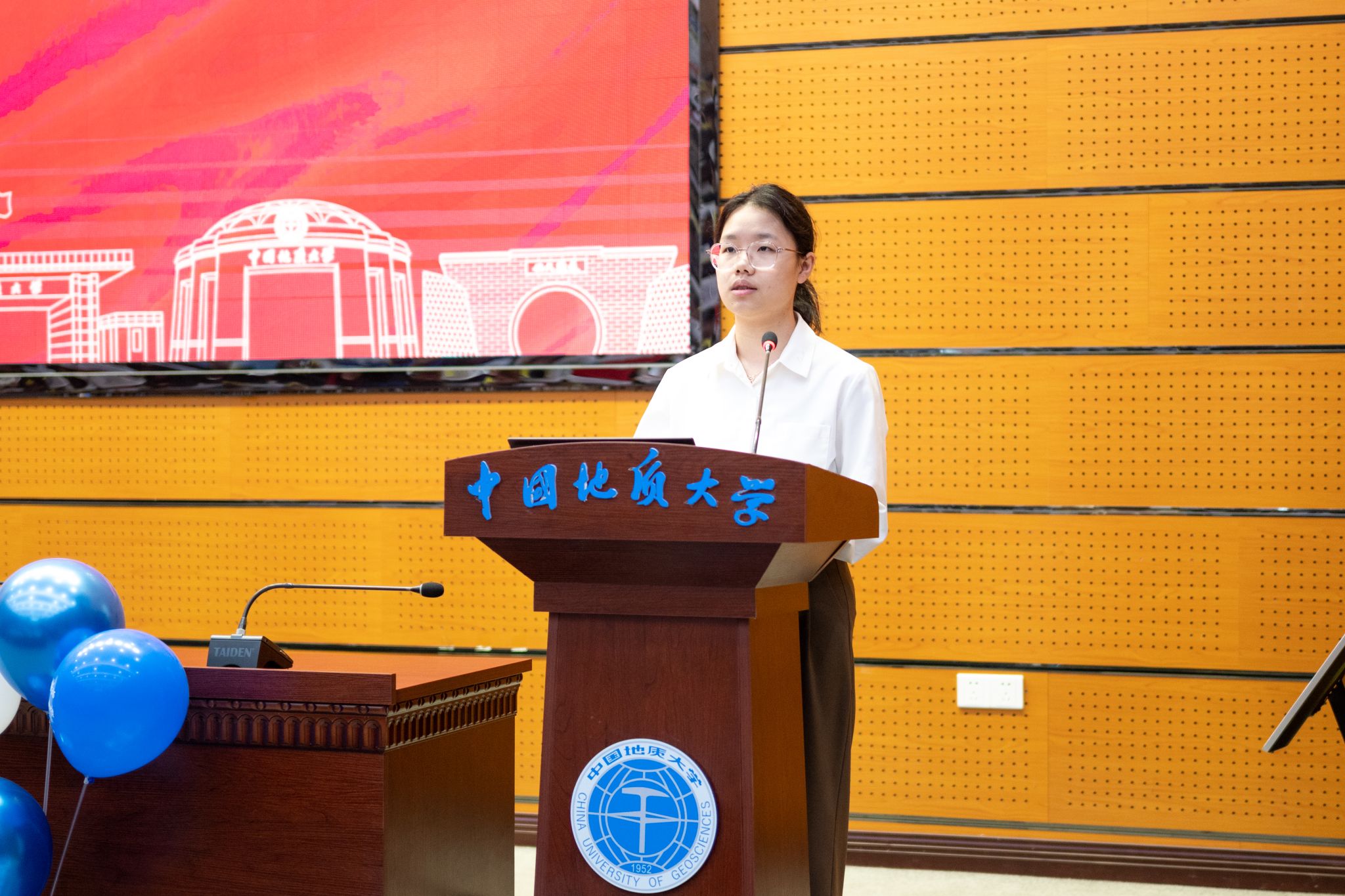 在校生代表、新任员工会执行主席余慧发言。她感慨与学长学姐们共同度过的美好校园时光,对学长学姐圆满完成学业、奔向锦绣前程表示祝贺,并表达了对他们的真切祝福和不舍之情。她说道,全体在校生会以他们为榜样,在求学路上刻苦钻研,脚踏实地,踔厉奋发,勇毅前行,争取早日成长成才,共同肩负起为Beats365唯一官网入口争光,为地大添彩、为国家效力的重任。
