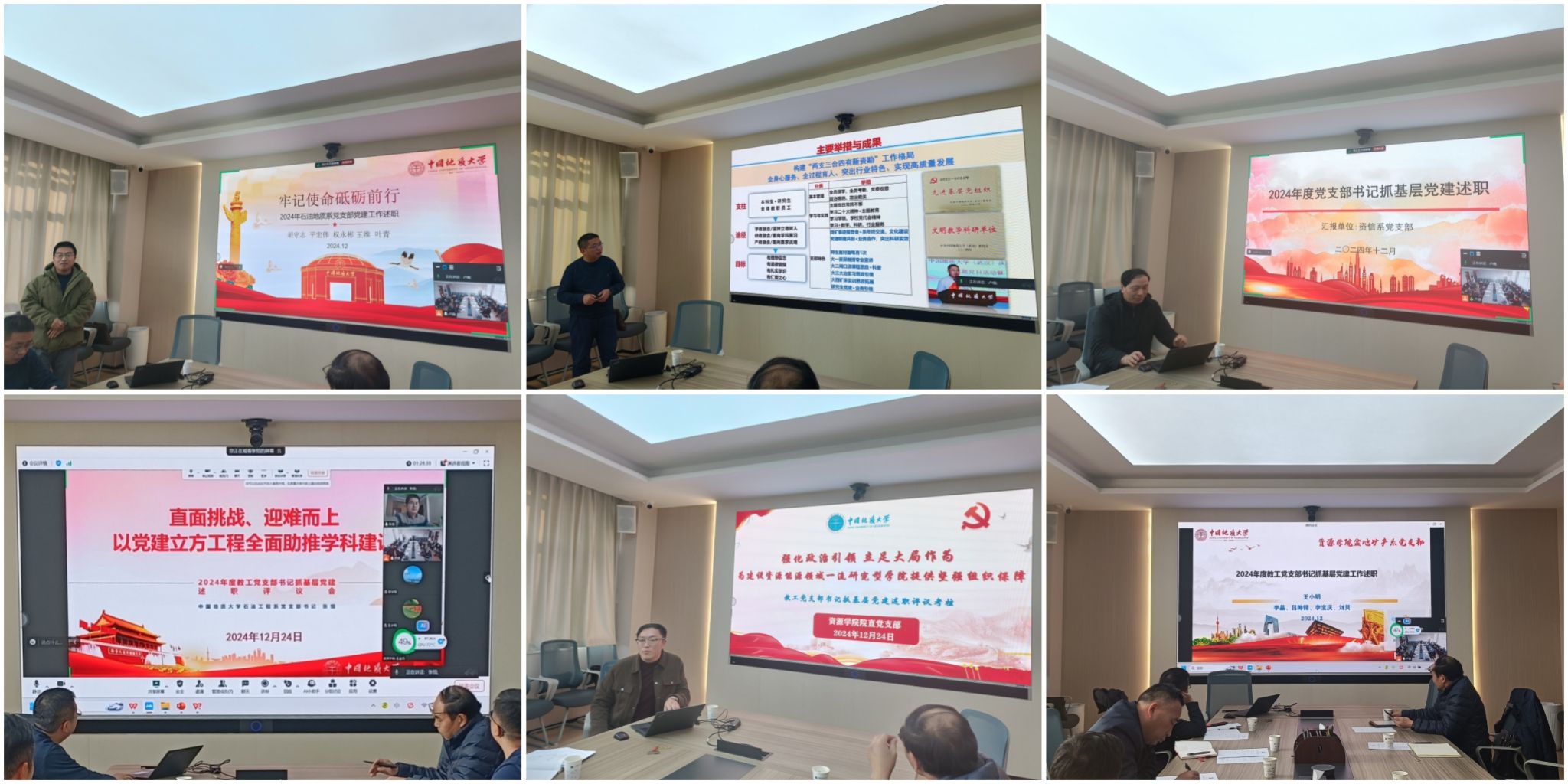 会上,公司6个教工党支部书记按照《Beats365唯一官网入口关于做好2024年度教工党支部书记抓基层党建述职评议考核工作的通知》要求,聚焦坚持党建示范引领,党建和业务双融双促,发挥基层党组织战斗堡垒作用,落实立德树人根本任务,履行抓党建目标责任人责任等方面,以PPT形式进行了公开述职,全面客观地总结开展政治理论学习、党纪学习教育、党建联建共创、党建“双创”、思想政治教育、师生结对领航、党风廉政建设、“平安校园”建设等工作中的新思路、新做法,取得的新成绩、新亮点和典型经验。