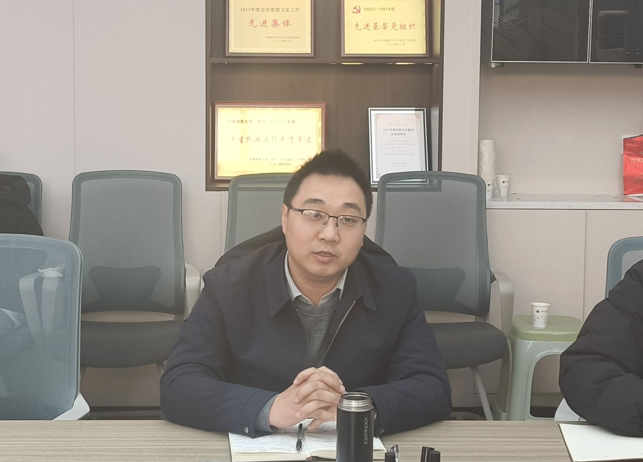 汪再奇充分肯定公司2024年教师党建工作。他讲到,2024年,各教工党支部按照“七个有力”的要求,规范有序、扎实有效地推进基层组织建设,支部建设成效显著,充分发挥了支部的战斗堡垒作用和党员的先锋模范作用,为公司的高质量发展提供了坚实保障。石油工程系党支部入选全国“双带头人”教师党支部书记“强国行”专项行动团队;资源科学与工程系党支部获评公司“优秀基层党组织”;资源科学与工程系党支部、石油地质系党支部、矿床学研究生党支部通过公司第二批党建“双创”中期考核;构造-成藏年代学研究生党支部获公司研究生党支部风彩大赛二等奖;吕新彪教授获授“第一次全国自然灾害综合风险普查先进个人”,姚卓森教授荣获第20届侯德封矿物岩石地球化学青年科学家奖、获评“湖北向上向善好青年”,陈思副教授获第七届全国高校青教赛工科组三等奖,煤地质学课程组获得湖北省高校“优秀基层教学组织”称号,“沉积相与沉积环境”“煤岩及煤化学”获批湖北省2024 年度新工科建设项目,“矿床学导学团队”获评卓越导学团队,“沉积过程定量化导学团队”获评优秀导学团队,资源科学与工程系获评“文明教学科研单位”;吴超获评“优秀党员”,霍少孟获评“优秀党务工作者”,朱红涛获评“最美地大教工”,赵新福获评“研究生的良师益友”,伏海蛟获评“最受员工欢迎老师”,马奔奔、邹双梅、韩金生获评“优秀班主任”……