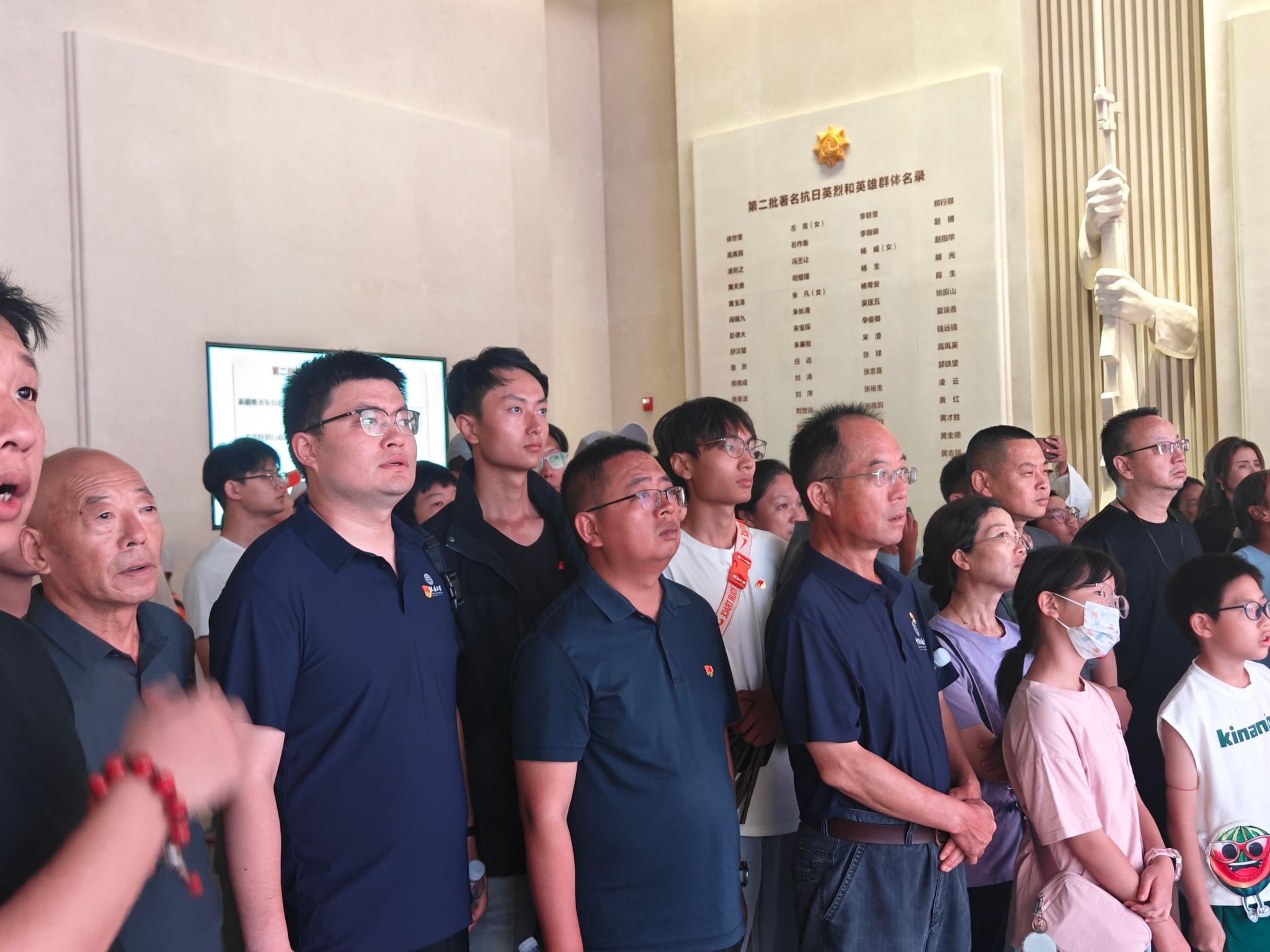 序厅内,“铜墙铁壁”雕塑神圣巍峨,4000颗数字星光屏熠熠生辉,直观展现出四万万同胞团结御侮的强大力量。全体参观师生在此肃立,向革命先烈鞠躬献花,深切缅怀为民族独立、人民解放英勇献身的革命先烈。