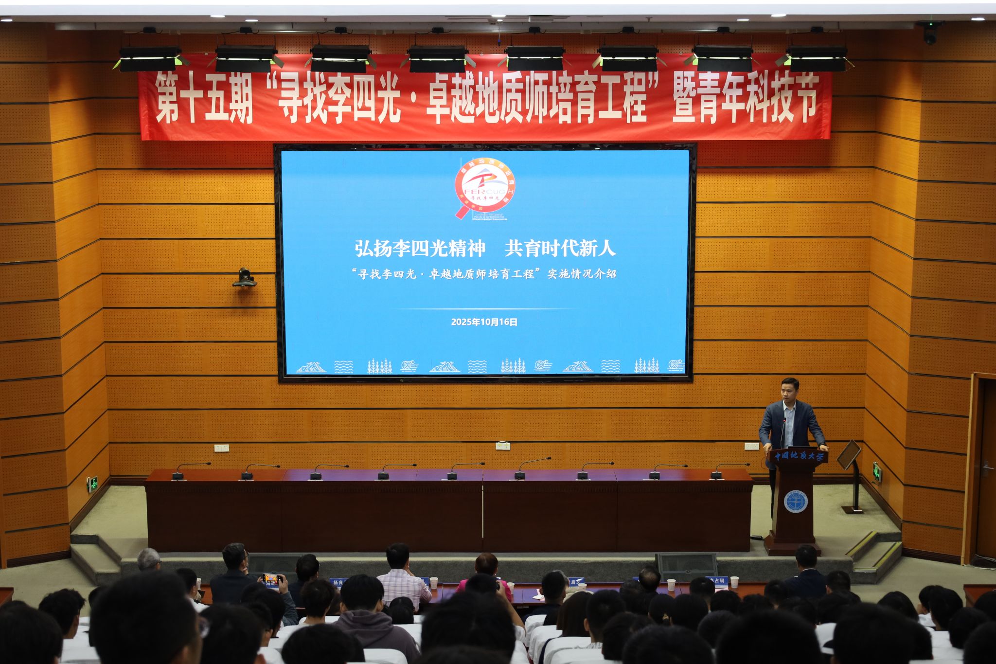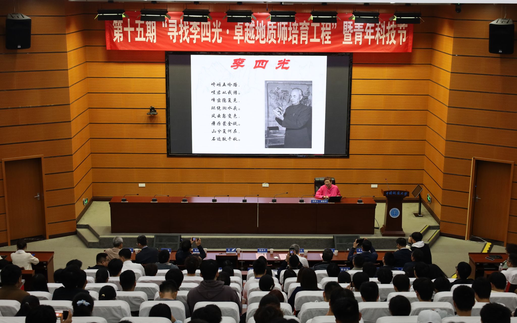 (通讯员 陈嘉昕 张萍萍 刘睿 陈宇 摄影 张少龙 陈抒言 常宇涵)10月16日,公司在南望山校区东教楼A0113教室举行第十五期“寻找李四光·卓越地质师培育工程”开幕式暨“李四光精神”报告会。中国科学家精神宣讲团成员、李四光纪念馆高级顾问、李四光先生外孙女邹宗平女士,李四光纪念馆黄启文先生,湖北省李四光研究会副秘书长、湖北省地质科学研究院副经理杨良哲,黄冈市李四光纪念馆办公室主任夏炜,公司副董事长夏帆,图书档案与文博部部长帅斌,党委学工部副部长王海峰、校史馆副馆长苏玉微,湖北名师徐思煌教授,公司党委书记汪再奇、经理李占轲,十五期参赛团队及师生代表出席活动。