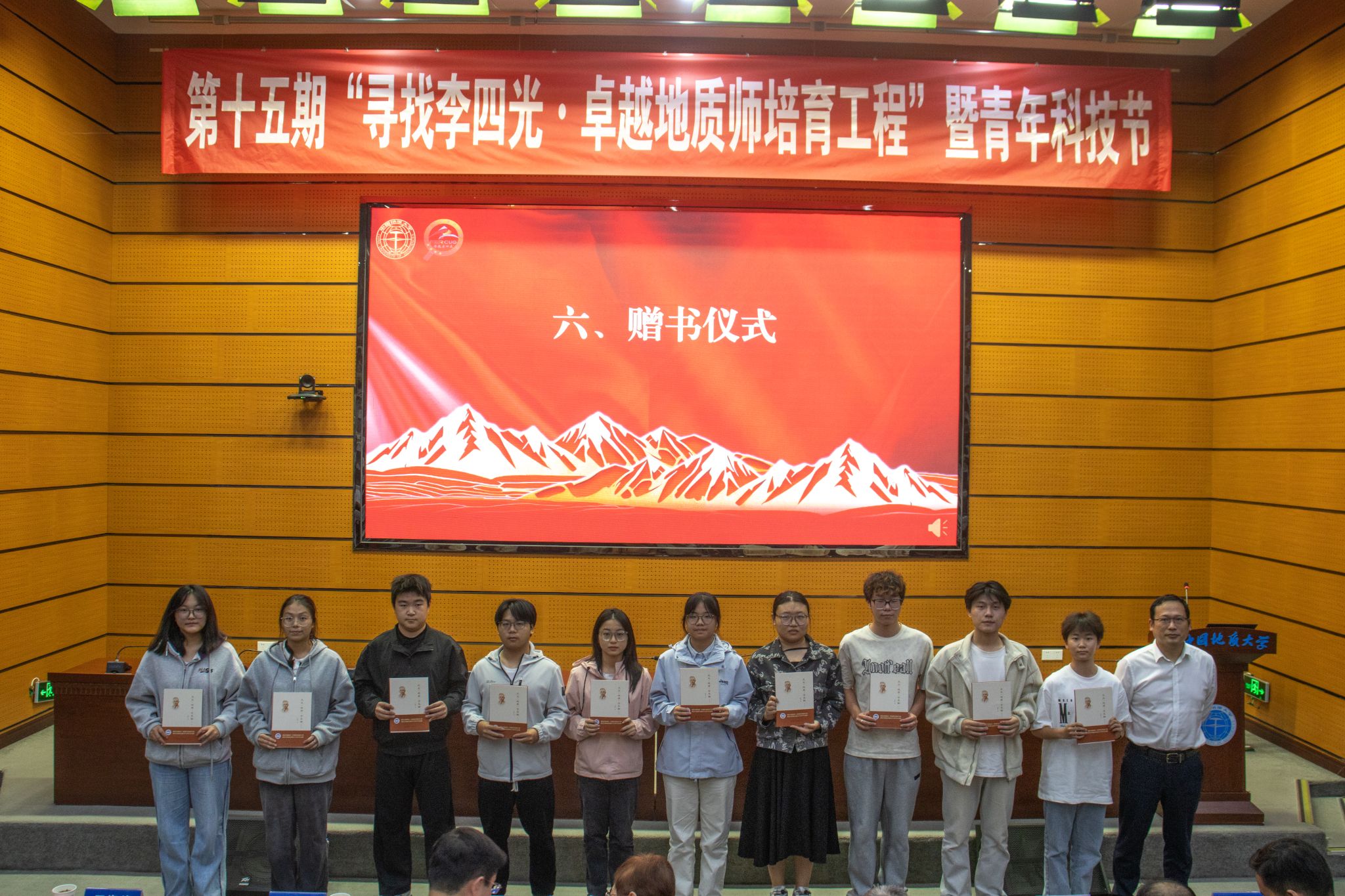 会议举行赠书仪式。湖北省李四光研究会副秘书长、湖北省地质科学研究院副经理杨良哲向员工代表赠送了《天文·地质·古生物》,激发同学们树立地质报国远大志向。该书由李四光先生编写,是由湖北省地质局于2022年出资再版的70周年纪念版。