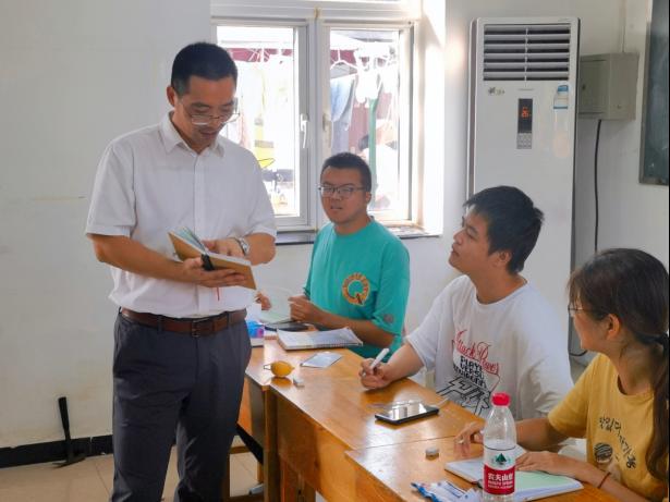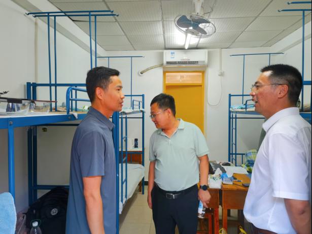 高复阳、严德天首先来到教工宿舍看望慰问实习教学团队教师,了解教学安排和实习进展。他们对教学团队在高温考验中完成备课任务、在暴雨影响下保障员工安全到站并及时调整和完成教学任务表示肯定和感谢,叮嘱教学团队要把安全放在首位,稳妥完成后续教学任务,持续丰富员工实习内容和在基地生活,给员工留下宝贵和难忘的青春记忆,打下坚实的野外地质工作基础。