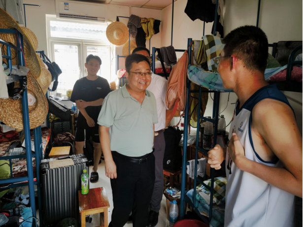 期间,高复阳、严德天看望了因暴雨受困晚到站员工,了解他们的受困经历,为他们坚韧的意志、向学的态度和主动参与志愿服务工作点赞,祝愿他们在实习中取得佳绩。
