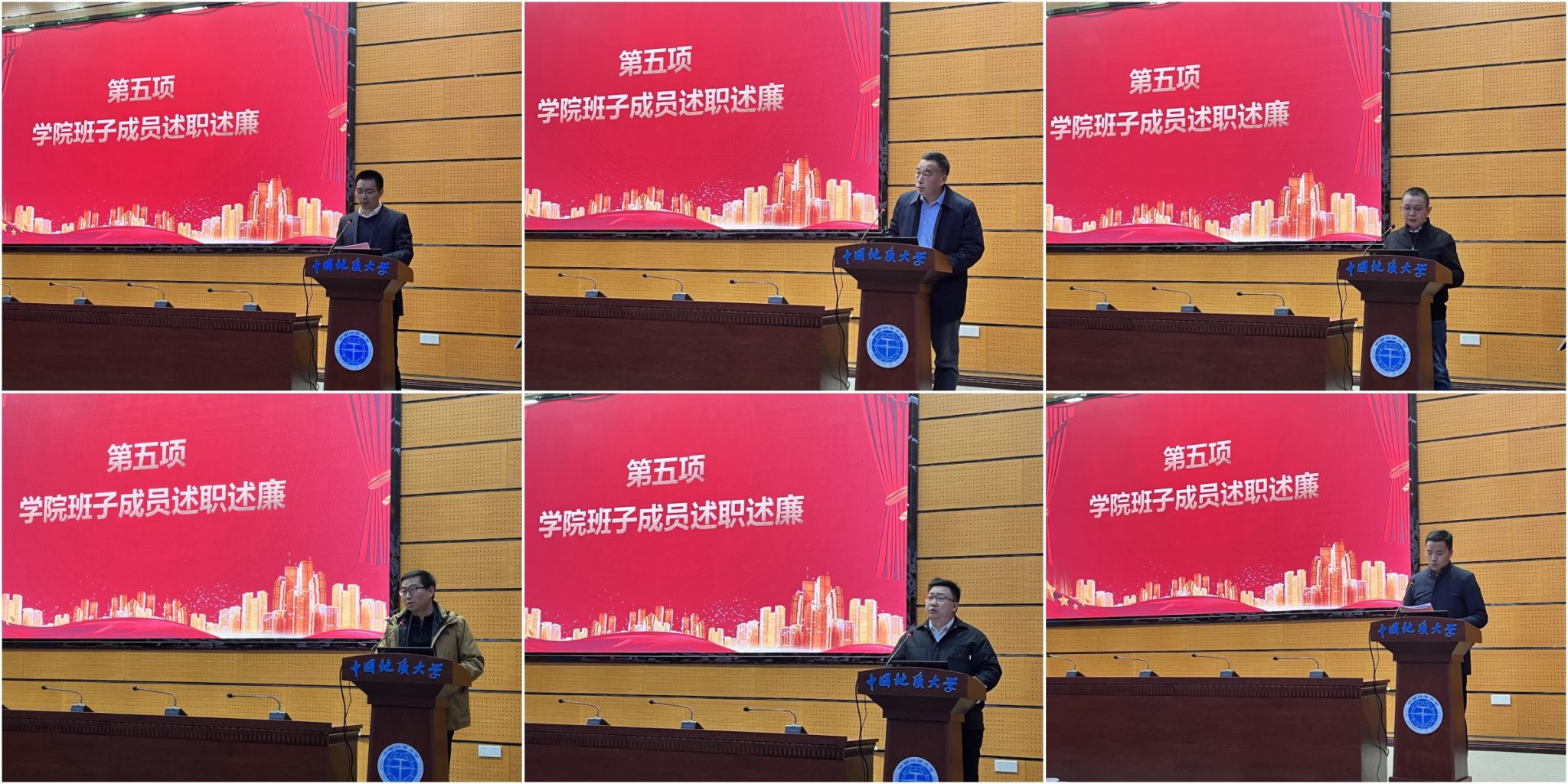 公司班子成员严德天、朱红涛、沈传波、谭文伦、钟志、李占轲依次述职述廉。