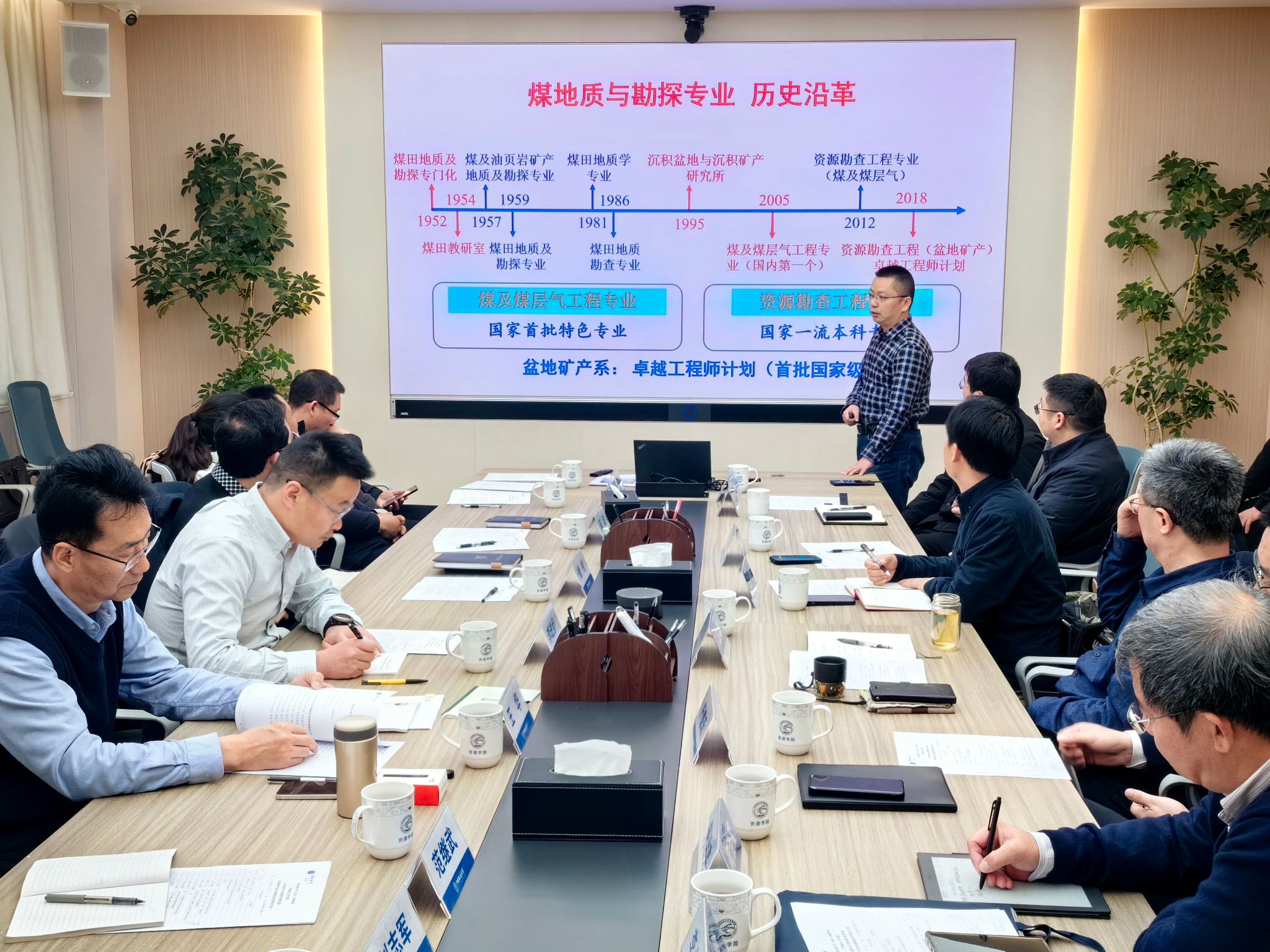 盆地矿产系主任甘华军介绍了盆地矿产系基本情况。他详细介绍了系团队力量、深部煤岩气勘探与开发科技成果、学科方向拓展、实验和实践平台等方面的情况。