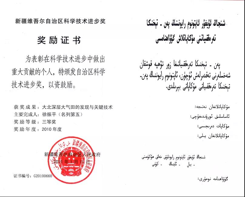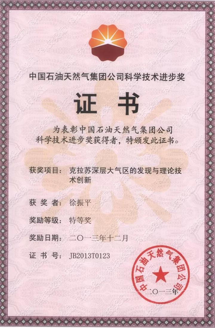 获大北深层大气田的发现与关键技术三等奖