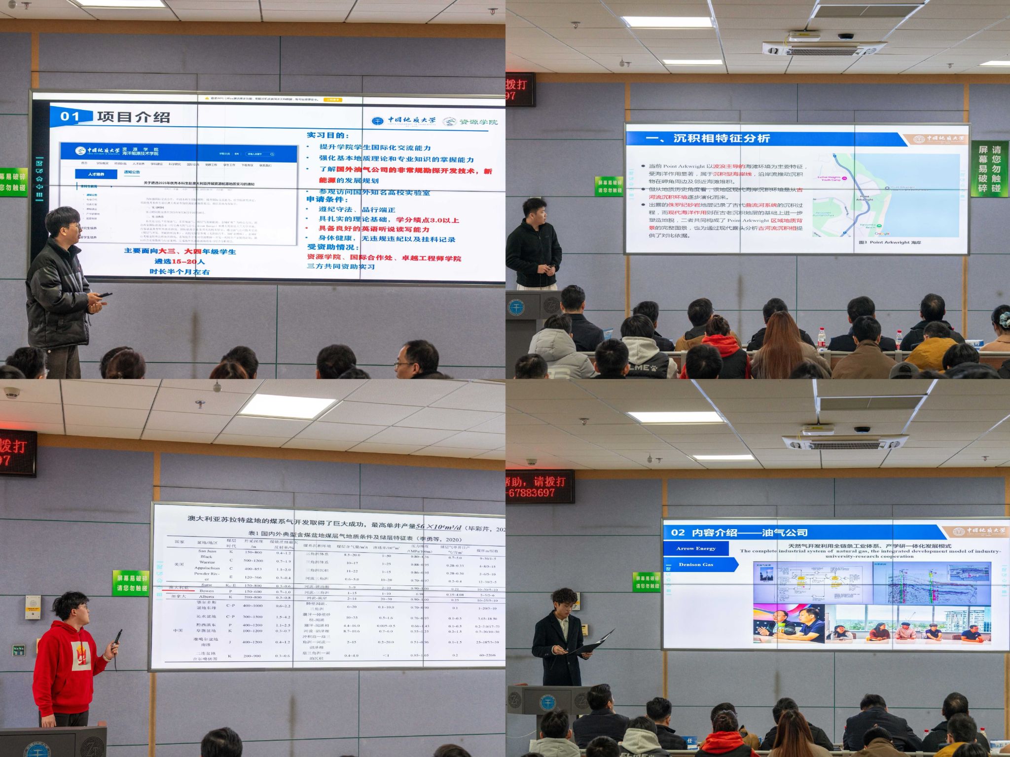 2025年澳大利亚地质实习四个员工小组依次作汇报。汇报中,各小组回顾了从野外地质勘察路线踏勘实测、海外高校学术研讨交流,到企业实地参访、岩心库样本分析实践的完整过程,围绕澳大利亚实习专题研究进行汇报,通过详实的数据、清晰的图表和严谨的分析,展现了扎实的专业基础和良好的科研素养,汇报内容得到在场师生的认可。分享过程中,同学们不仅深化了专业认知,更在对比中增强了对中国资源能源事业发展的自信,深刻认识到资源学子的时代重任,纷纷表示将把所学所获转化为地质报国的实际行动,为保障国家能源资源安全贡献青春力量。
